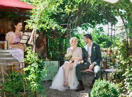 Die Traurede war einfach nur atemberaubend und wunderschön. Wir kriegen noch heute Gänsehaut, wenn wir daran zurückdenken: Sie hat uns einerseits je als Personen und andererseits als Paar auf den Punkt erfasst und unsere Liebesgeschichte in wunderschönen Worten erzählt und unserem Fest dadurch genau jene feierliche Note verliehen, die wir uns gewünscht hatten. Hätten wir von Beginn weg beschreiben können, wie unsere Trauung sein soll, wäre es genau so gewesen, wie sie es war: vom Anfang bis zum Ende geistreich, liebevoll und witzig.